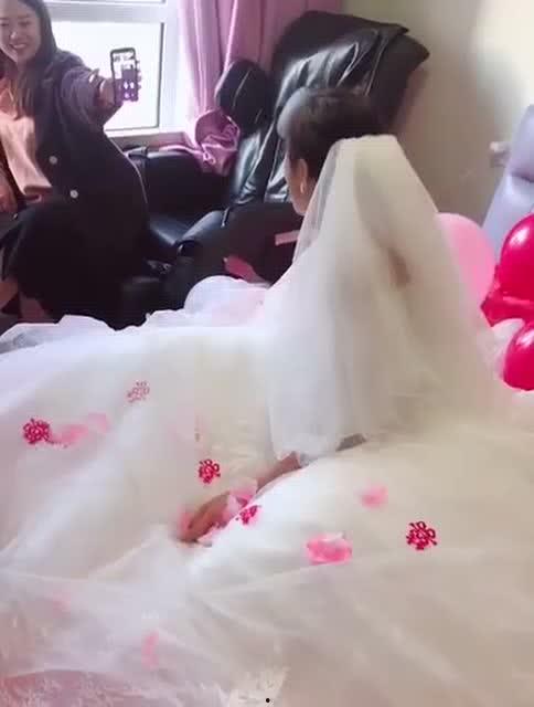 当我朋友第一次给我展示这段视频时,我简直不敢相信自己的眼睛。视频中,新娘穿着一件洁白的婚纱,头戴一顶精致的婚纱头纱,站在镜头前,笑容灿烂。那一刻,她的美丽仿佛定格在了时间中,让人忍不住想要多看一眼。